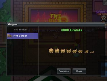 The hot burger sells burgers for 8,000 Gralats