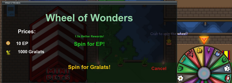 The Wheel of wonders is where prize hunters will go, 1000 Gralats or 10 EP to win exclusive NPCs, Hats, and more!